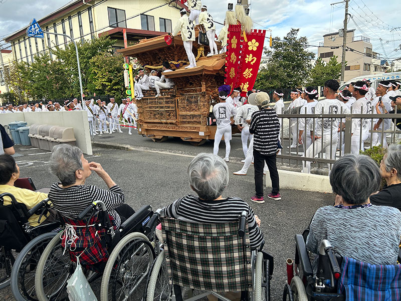 秋の始まりは、みなさまが毎年楽しみにしておられる鳳のだんじり祭り。花の里の前も笛や太鼓で賑わいました。