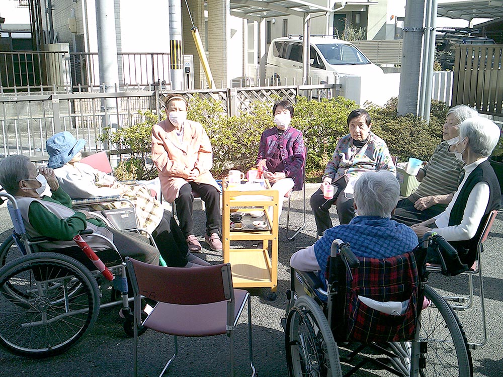 華の里も面会禁止です。 家族様に少しでも安心していただけたらと、メッセージを書いたうちわを持っていただき 元気な姿を“パチリ”。入居者様家族様全員に写真を発送しました。 どうぞ皆様お体大切にして下さい。 家族様といつものように会える日まで、入居者様と共にスタッフも頑張ります。 ステイホーム”・・・1人1人の我慢と努力でいつもの日常を取り戻しましょう。